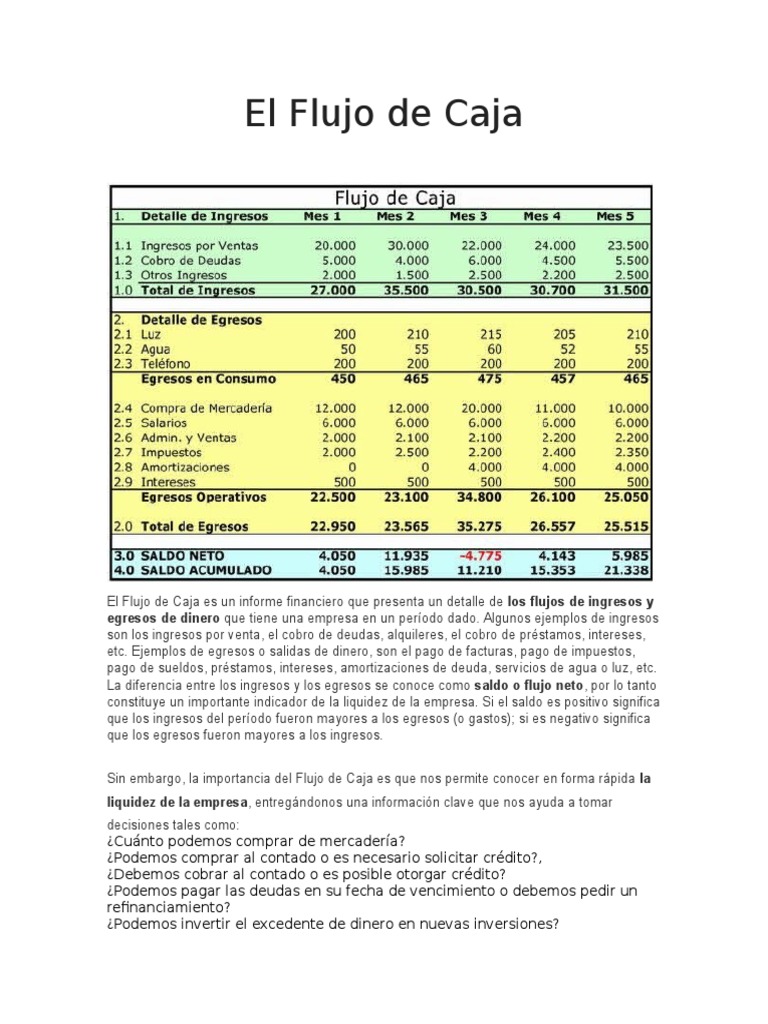 Flujo De Caja! A cash flow is a real or virtual movement of money: